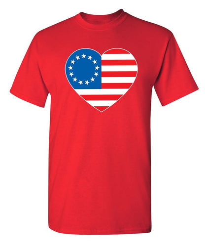 Betsy Ross Heart Shaped American Flag - Patriotic T-Shirt